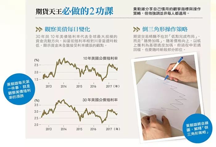 不同于股票市场,期货交易的杠杆更高、风险更恶,也因此,要像黄毅雄一样,能在期货市场大进大出、近四十年而屹立不倒,至少必须具备两大先决条件:第一,对行情的多空趋势判断必须绝对精准;第二,要能与高张力的风险长期共处。