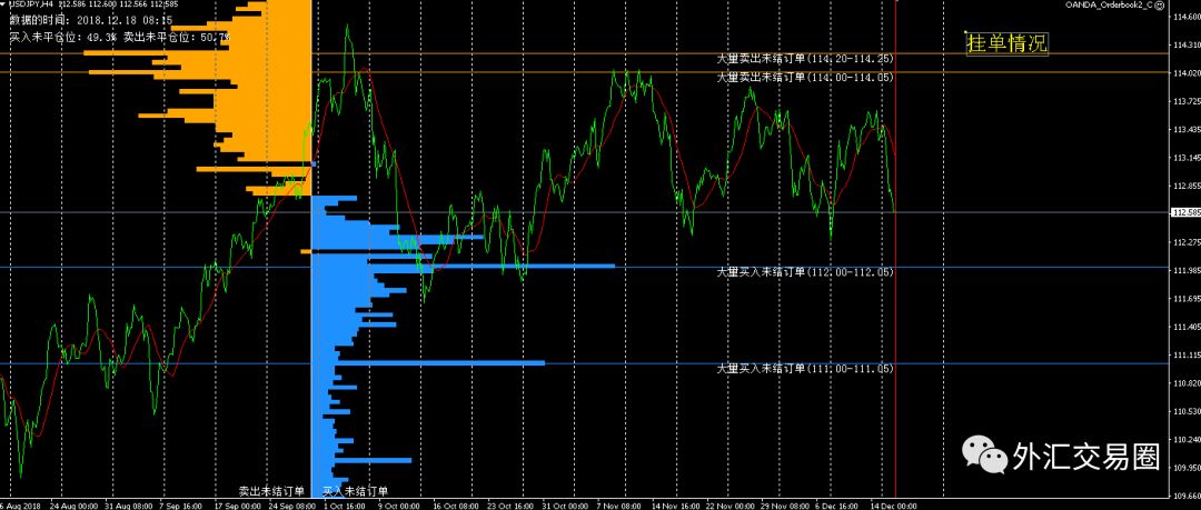 可以看到零售客户在这里的多空持仓处于(多头:48.9%,空头:51.1%),大量用户在114.00挂空单卖出,112.00挂多单买入。在此区间内,大家可以做高抛低吸,或网格操作法。