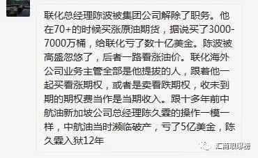 如以上消息属实,陈波给国家造成的经济损失可能达几十亿美金,无独有偶,“中航油”巨亏案也曾给国家带来巨大损失: