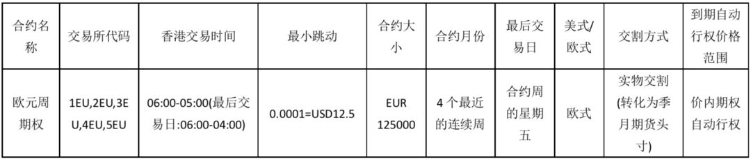 表1 欧元周期权合约细则