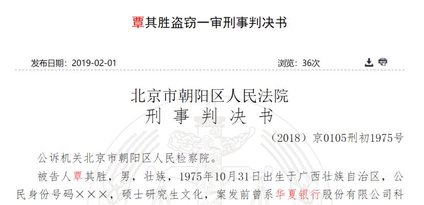 判决书显示,被告人覃其胜,男,壮族,1975年10月出生于广西壮族自治区,硕士研究生文化,案发前曾任职于华夏银行科技开发中心开发四室。其岗位职责为负责核心系统功能扩充和优化升级的技术需求分析、功能规格编制、设计、开发、单元测试、集成测试等工作。