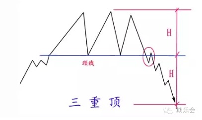 三重顶或底是极少见的形态,和头肩型仅有些许差别,它的特征是三个峰或谷的高低度几乎一致。常无法分辨某个形态是头肩型抑或三重顶,幸好两种形态所代表的意义是相同的。
