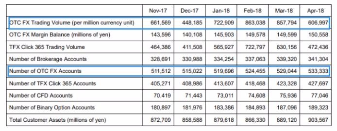 与Monex证券以及kabu.com类似,今年4月日本外汇经纪商GMO CLICK证券的交易量也持续减少。