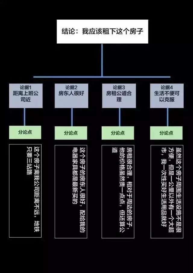 无论是谁,都会喜欢这样的陈述方法。这也是为什么,当你给领导汇报工作的时候,他们绝不可能听你长篇累牍的解释分析,他们只会听你的结论,或者解决方法。当他们有兴趣的时候,会追问细节,当他们很忙的时候,他们只需要听到最重要的东西。