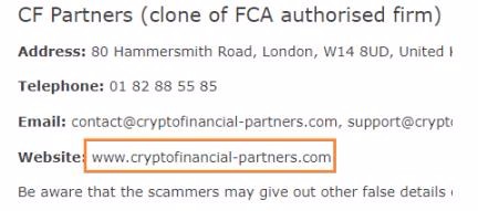 FCA指出,该平台克隆了合规公司CF Partners (UK) LLP.
