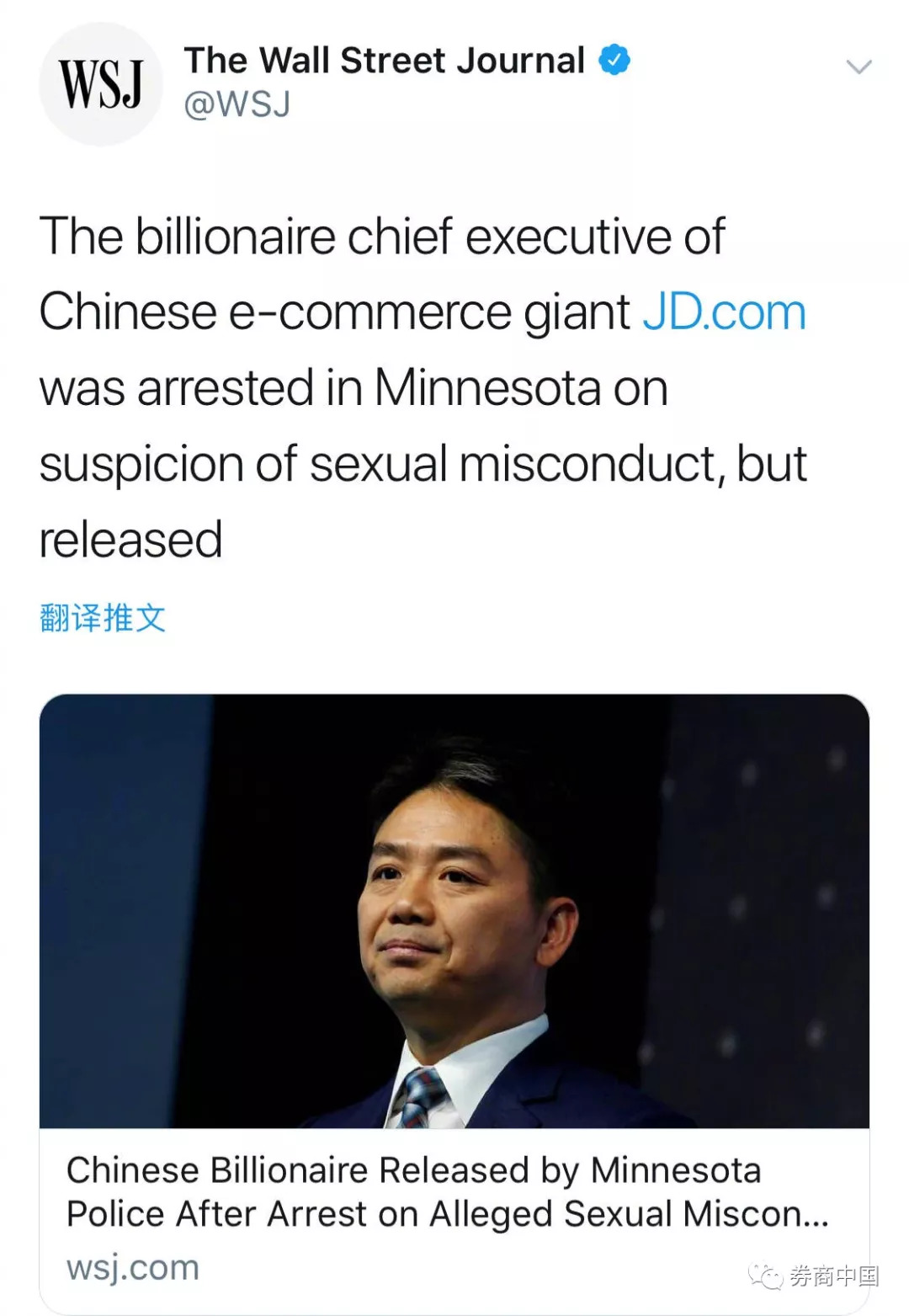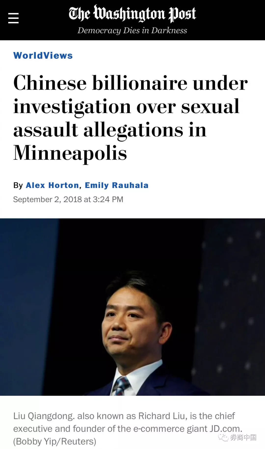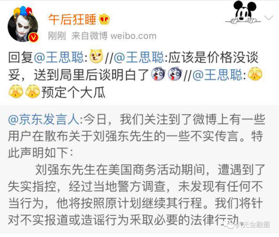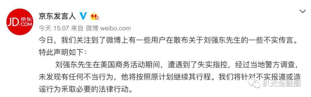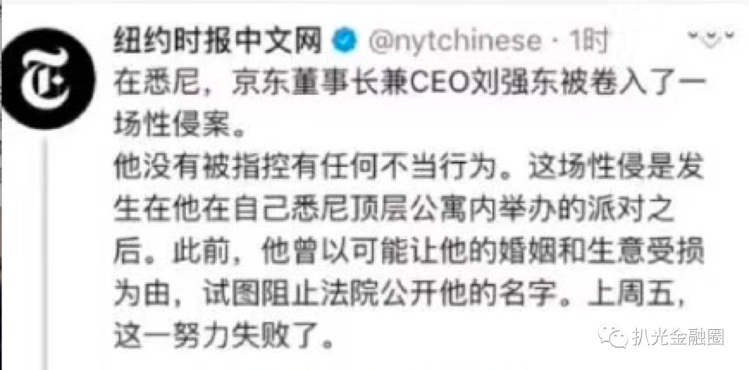 无聊的周日下午,大洋彼岸传来惊天大瓜!京东集团董事局主席刘强东被曝出在明尼苏达大学访问时性侵女大学生,进警局后被保释!