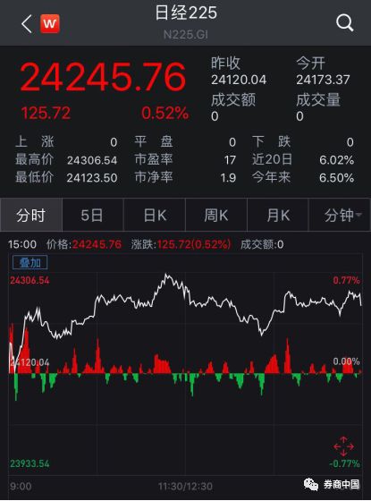 今天,日经225指数再创新高,盘中最高触及24306.54点,刷新1991年11月来新高。到今天收盘时,报24245.76点,涨幅0.52%。